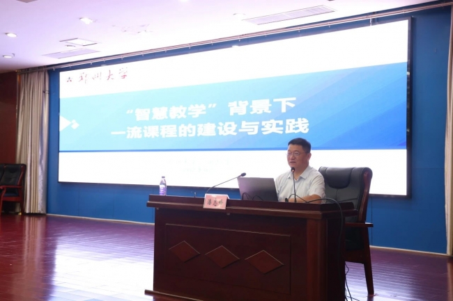 郑州大学教务部副部长、教学运行中心主任潘志峰以《“智慧教学”背景下一流课程的建设与实践》作讲座。潘教授以“智慧教学”背景下一流课程的建设与实践为题,从一流课程建设的意义、“课程”的理解与内涵、智慧教学的内涵与实践、一流课程的建设等四个方面做了精彩报告,在报告的最后,潘教授指出,“教育是事业,事业的成功在于奉献;教育是科学,科学的探索在于求真;教育是艺术,艺术的生命在于创新。”
