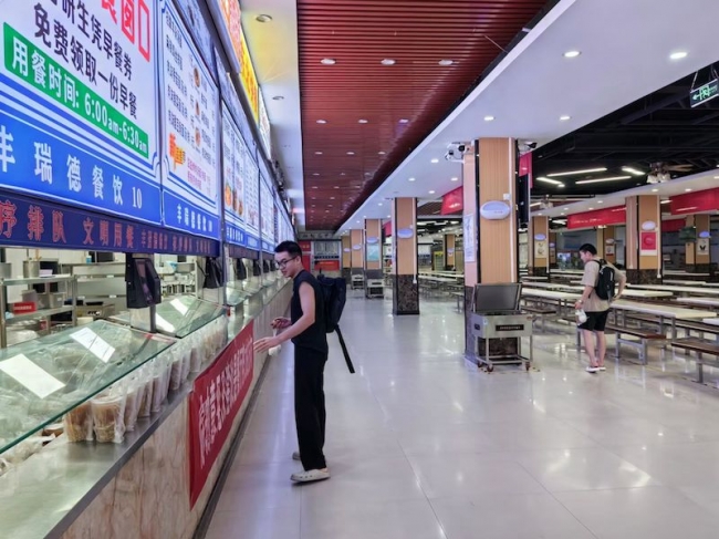 餐厅工作人员凌晨2点多开始备餐。热腾腾的小米粥、豆浆、鸡蛋、包子、酱香饼等品种齐全,免费早餐就是这么香。学校还贴心提供平价营养餐窗口,餐品丰富,大大降低了同学们的生活成本。后勤维修人员及时维修空调、灯管、洗衣机等,给同学们提供舒适的生活环境。