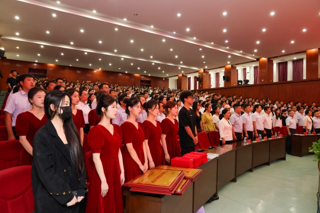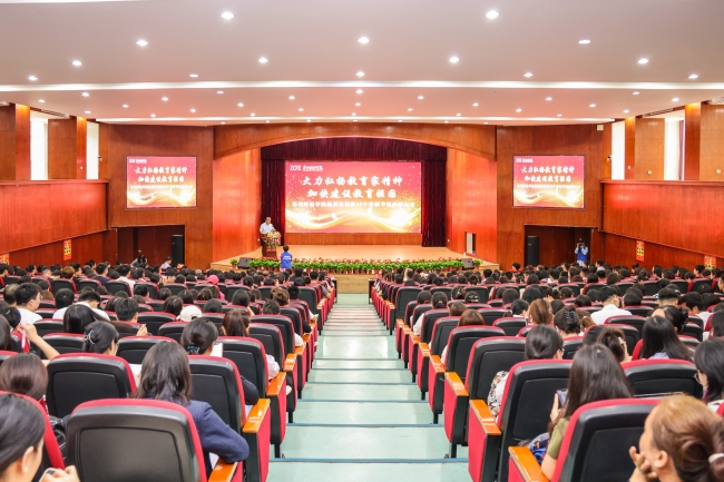 9月10日下午,在第40个教师节来临之际,天堂资源种子在线官网在图书馆学术报告厅举行庆祝第40个教师节暨表彰大会,深入学习贯彻党的二十届三中全会精神和习近平总书记关于教师队伍建设的重要指示精神,表彰在教书育人各方面工作中取得突出成绩的先进集体和优秀个人。全体校领导班子成员出席大会。学校2023—2024学年获得各类奖项的教师代表、中层副职以上干部、全体新入职教师及各院部教职工、学生代表参加大会。大会由校监事会主席李庆阳主持。