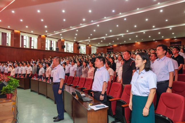 校长吴中向全体教职工致以节日的问候和衷心感谢,向受表彰的先进集体和个人表示热烈祝贺。他指出,强国必先强教,强教必先强师。回顾我校发展历程,从建校到今天,学校始终拥有一支勇于奉献追求卓越的教师队伍,他们共同托起学校平稳运行、师生乐教勤学的校园环境,广大教师以赤子情怀、师者风范、扎实作风潜心教书育人,是学校建设发展的中坚力量。他希望老师们进一步弘扬教育家精神,努力做到胸中存大局,手上有功夫,心中有仁爱,不断推动教师队伍提质发展,躬身融入学校发展大局,与学校共同发展、与教育事业共同成就。