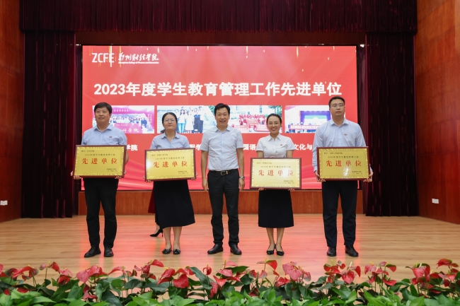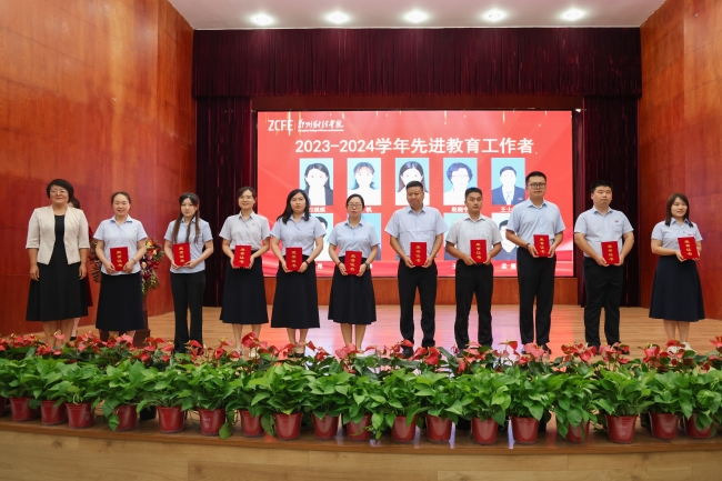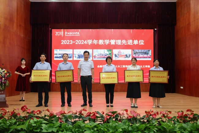 表彰会前,艺术教学部的老师们带来豫剧《花木兰》选段、京剧《梨花颂》、歌曲《我和我的祖国》等精彩演唱。开场视频《弘扬教育家精神 勇担新时代使命》展现了过去一年里郑财教师躬耕教坛、倾心育人,充电蓄能、强化本领,广大师生投身社会实践、把青春华章写在祖国大地上的奋斗场景和奋进精神。
