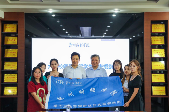 最后,校领导为第七批赴英留学生代表授旗,并与学生签署协议,合影留念。