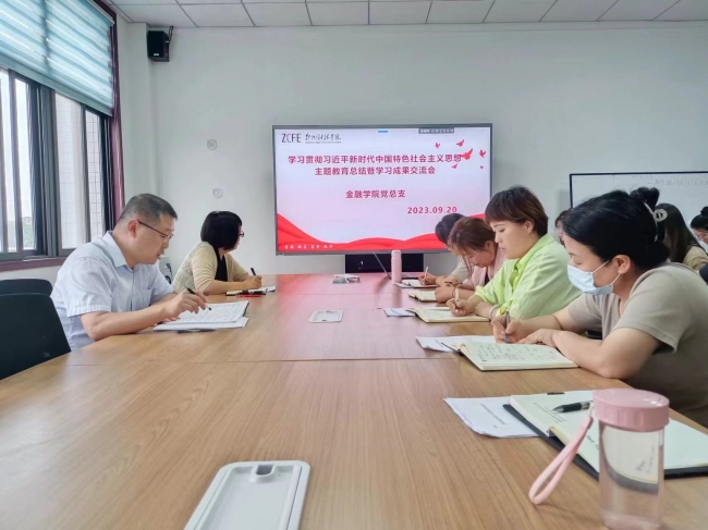 9月20日下午,金融学院在德信楼508会议室召开了学习贯彻习近平新时代中国特色社会主义思想主题教育总结暨学习成果交流会,教工党支部全体党员参加会议。会议由党总支书记杨贵仓主持。